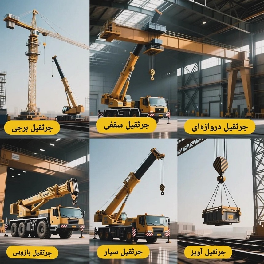 | جرثقیل برجی (Tower Crane) | پرکاربرد در پروژههای ساختمانی مرتفع. دارای ارتفاع زیاد و توانایی جابهجایی بارهای سنگین در فواصل طولانی. |